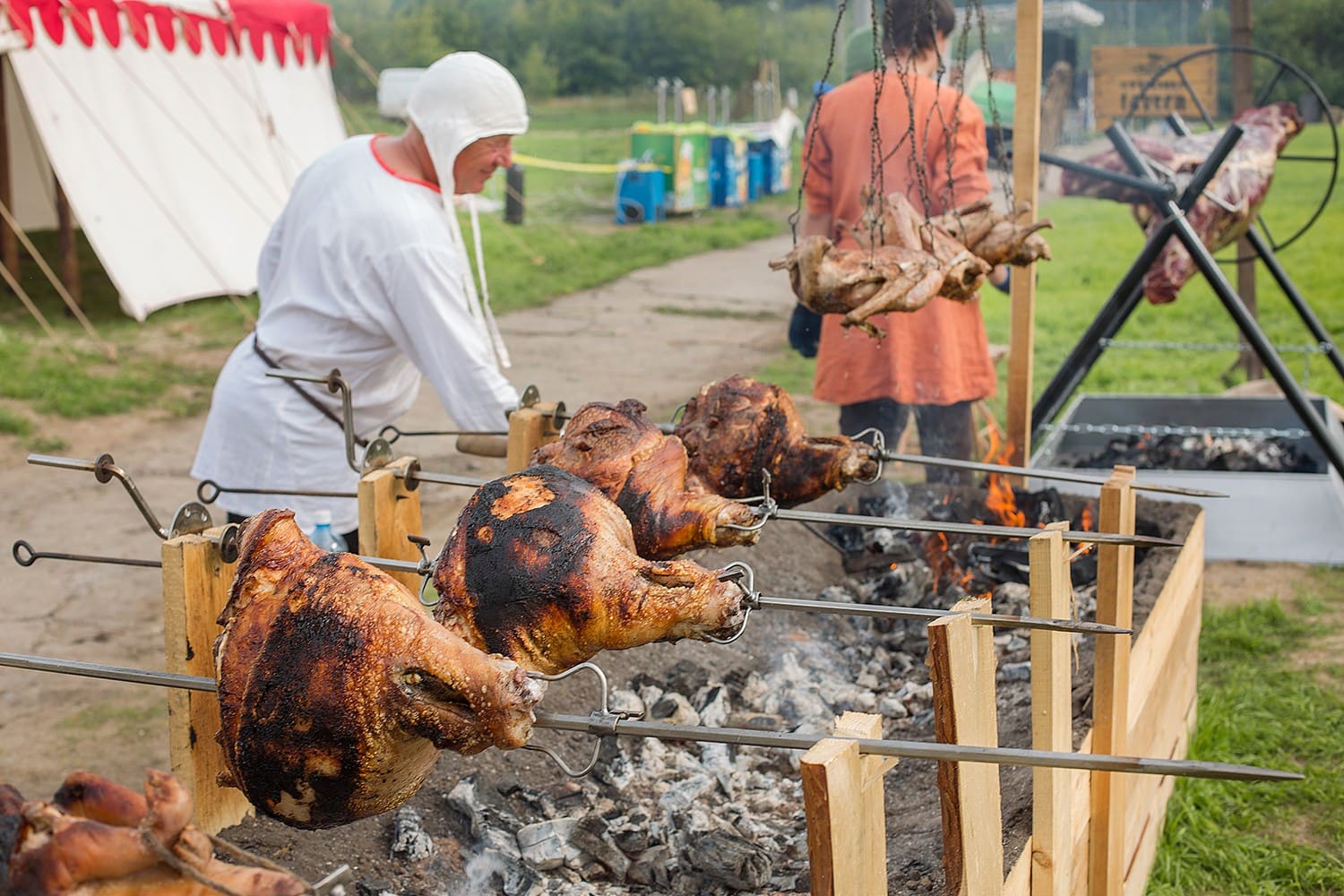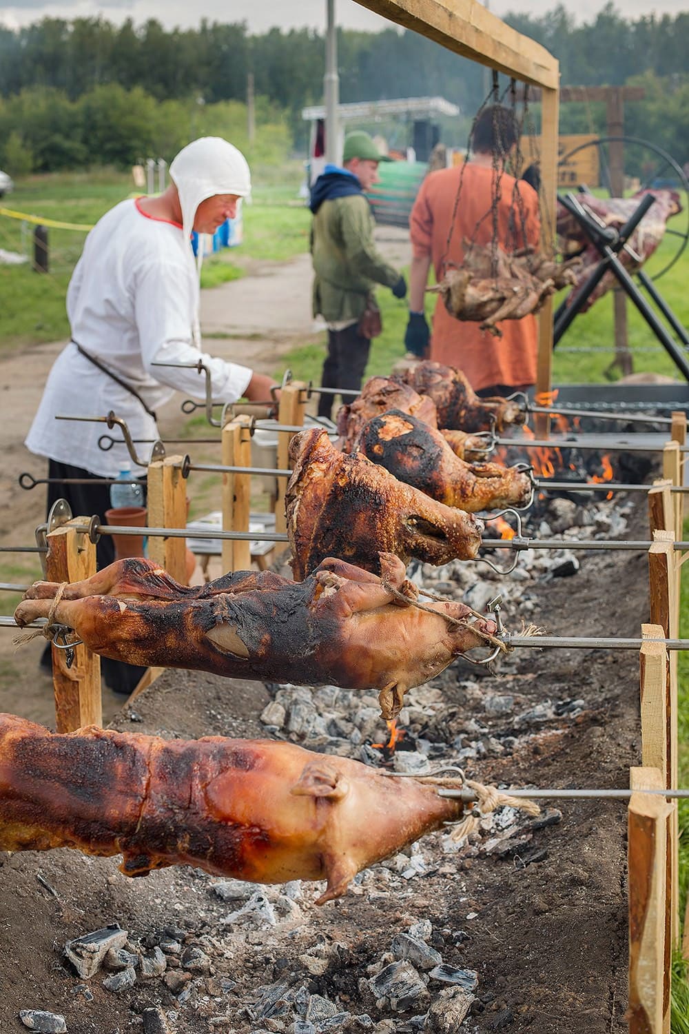 Барбекю – это лучшее кулинарное сопровождение для летнего уличного корпоратива или тимбилдинга! В нашем арсенале не только традиционные плов или шашлык, но и интересные и красочные блюда народов мира, а также тематические угощения, которые мы подбираем под тематику мероприятия и готовим на огне прямо на площадке.